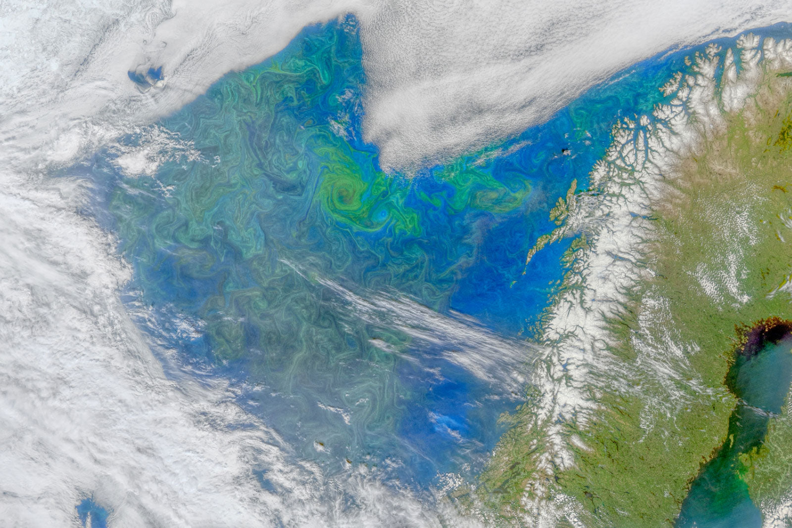 Das Ozeanbild, das die Frühjahrsblüte des Phytoplanktons im südlichen Bottnischen Meerbusen zeigt, wurde aus Daten generiert, die vom MODIS-Instrument über den Aqua-Satelliten der NASA gesammelt wurden.