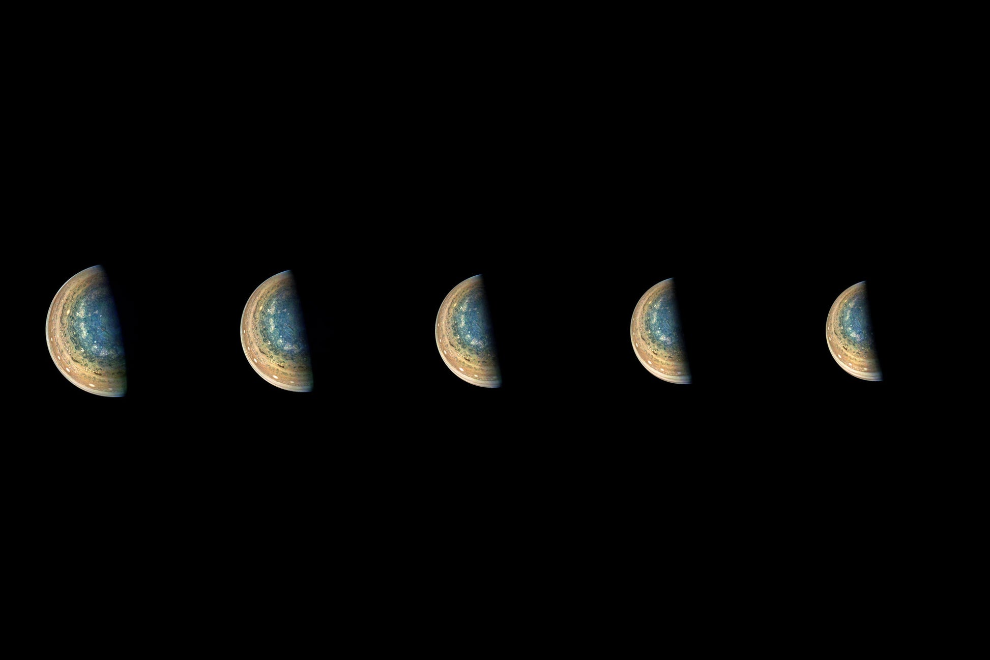 Die Bilder zeigen direkt Jupiter. Aber durch leichte Variationen in den Bildern erfassen sie indirekt die Bewegung der Juno-Raumsonde selbst, die wieder einmal Hunderte von Millionen Meilen von der Erde entfernt um einen riesigen Planeten schwingt.